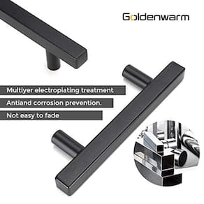 ferragens de armário de cozinha preto fosco - [Dimensão]: Furos centros: 3" (76 mm), Comprimento total: 5" (127 mm), Barra quadrada: 1/2" (12 mm)*1/2" (12 mm), Altura: 1,34" (34 mm) - [Pacote]: Você receberá 20 peças de puxadores de armário, dois parafusos padrão M4 de comprimento correspondente de 2,5 cm e 3,9 cm para combinar com diferentes espessuras de armários, se você precisar de outros tamanhos de parafusos, , nós o ajudaremos a substituí-lo. - [MULTIFUNÇÃO]: Perfeitamente adequado para armários, gavetas, armários, cômodas e outros móveis, tornando sua linda casa com senso elegante e moderno. - [MATERIAL]: O puxador é feito de aço inoxidável com acabamento preto fosco, proporcionando a experiência de uso mais confortável. Em comparação com outros puxadores de gaveta, os puxadores goldenwarm são muito mais duradouros. - [SERVIÇO PERFEITO]: Prometemos a você 1 ANO DE GARANTIA. Se você precisar de reembolso ou substituição, sinta-se à vontade para entrar em contato conosco a qualquer momento. goldenwarm está sempre feliz em ajudá-lo!