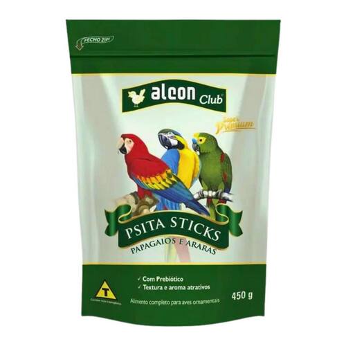 Alcon Club Psita Sticks - Papagaios e Araras é um alimento extrusado completo para Papagaios, Araras e outros psitacídeos médios e grandes. Contém Prebiótico que promove o crescimento seletivo de bactérias benéficas presentes nos intestinos, melhorando o aproveitamento dos nutrientes. A baixa concentração de ferro, importante para estas aves, evita riscos ao bom funcionamento do fígado. Elaborado com ingredientes selecionados, vitaminas e minerais de alta qualidade, apresenta textura e aroma agradáveis. O formato estimula a manipulação pelas aves, reproduzindo a situação encontrada na natureza. Facilita muito o manejo, pois não há necessidade da rotina diária de limpeza das sementes. Deste modo o alimento pode ser fornecido para vários dias. Marca: Não Informado Ean: 7896108815355