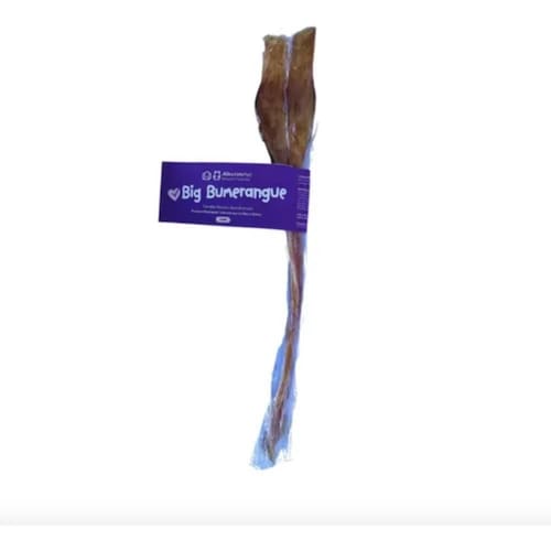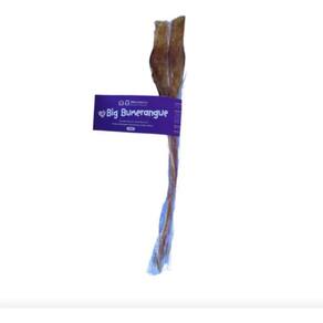 Big Bumerangue - Mordedor natural de tendão bovino para cães com mordida forte O Big Bumerangue da Mineiro Pet é um mordedor natural feito com tendão bovino desidratado, desenvolvido especialmente para cães que gostam de desafios e têm a mordida mais potente. Além de saboroso, é funcional e durável, promovendo benefícios físicos e comportamentais. Benefícios: Produto 100% natural, sem conservantes, corantes ou aromatizantes artificiais Alta resistência - ideal para cães de médio e grande porte Estimula o comportamento natural de roer e mastigar Auxilia na limpeza dos dentes e na prevenção do tártaro Contribui para o alívio do e da ansiedade Composição: Tendão bovino desidratado Indicação: Recomendado para cães de porte médio a grande, com alta necessidade de mastigação. Ótimo para oferecer como passatempo ou forma de enriquecimento ambiental. Apresentação: 1 unidade - Formato bumerangue, que facilita a pegada e aumenta o tempo de roedura Marca: Alecrimpet