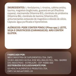 Suplemento para potencializar seu cérebro e foco. Descubra a sua melhor versão eliminando a procrastinação, falta de atenção e distrações contínuas do seu dia a dia. Turbine a sua produtividade e aumente a concentração com o Alert Booster. Fórmula 100% natural. Livre de vícios e efeitos colaterais. Matéria-prima premium. O Alert Booster foi desenvolvido por médicos com base em estudos científicos, resultando em uma fórmula balanceada e cuidadosamente elaborada com diversos ingredientes que auxiliam na melhoria do foco, concentração cerebral e produtividade. É o único booster do mercado que reúne o poder do Magnésio Bisglicinato, Vitamina B6, Vitamina B1, Taurina, Guaraná, Cafeína, Fenilalanina, Tirosina e Vitamina B3 no mesmo suplemento. Magnésio bisglicinato 10 mg - Forma altamente absorvível de magnésio que suporta a função muscular e nervosa saudável, contribuindo para a redução do e melhorando a qualidade do sono. Vitamina B6 1,3 mg - Essencial para o metabolismo das proteínas, carboidratos e gorduras, além de desempenhar um papel crucial na saúde do sistema nervoso, ajudando na produção de neurotransmissores como a serotonina. Vitamina B1 1,2 mg - Também conhecida como tiamina, é essencial para o metabolismo energético e a função cerebral saudável, ajudando na produção de energia a partir dos alimentos que consumimos. Taurina 70 mg - Aminoácido que desempenha um papel importante na regulação do humor, função cardiovascular e na proteção dos tecidos do corpo contra danos oxidativos, especialmente no cérebro e no coração. Guaraná 50 mg - Fonte natural de cafeína, que estimula o sistema nervoso central, aumentando a energia, o foco e a concentração, além de possuir propriedades antioxidantes. Cafeína 75 mg - do sistema nervoso central que melhora o estado de alerta, a concentração e o desempenho cognitivo, além de aumentar a energia e a capacidade de resistência. Fenilalanina 263 mg - Aminoácido precursor de neurotransmissores como a dopamina, que desempenha um papel crucial no humor, na motivação e na cognição, melhorando a atenção e o foco. Tirosina 263 mg - Aminoácido que auxilia na produção de neurotransmissores como a dopamina, norepinefrina e adrenalina, contribuindo para a melhoria do humor, da memória e do desempenho cognitivo. Vitamina B3 10 mg - Também conhecida como niacina, é essencial para o metabolismo energético e a saúde do sistema nervoso, além de desempenhar um papel importante na saúde da pele, digestão e na redução do . Benefícios proporcionados pelo Alert Booster: Melhora na capacidade cognitiva Aumento do foco e concentração Impulso de energia mental Melhora no gerenciamento do Aumento da criatividade e produtividade Produtividade continuada Dosagem diária: 2 cápsulas ao dia. As fórmulas dos produtos GoHealth são compostas por ingredientes 100% naturais e sem aditivos químicos. Segue rigorosamente a legislação vigente conforme as normas da ANVISA - Agência Nacional de Vigilância Sanitária. Este produto não é indicado para gestantes, lactantes ou crianças.