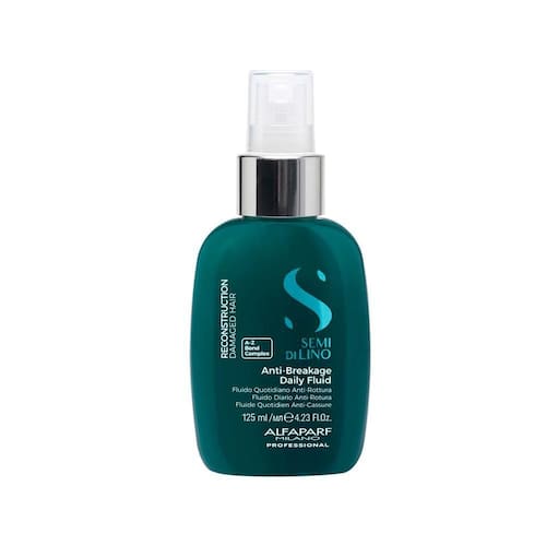 Leave-in Semi di Lino Reconstruction - Cabelos danificados. Anti-breakage Daily Fluid finaliza o processo de reconstrução dos cabelos finos danificados, selando as cutículas e criando uma barreira protetora eficaz ao redor da fibra capilar, protegendo-a do calor. Cabelos reparados, mais fortes, brilhantes e saudáveis. Formulação vegana. Com Urban Defence Pro: escudo antipoluição para proteção total. Com Shine Fix Complex: 24h de poder iluminante das raízes até as pontas. Com Color Fix Complex: filtro UV e antioxidante para prolongar a beleza da cor. Com A-Z Bond Complex: tecnologia de ligação que ajuda a reconstruir os cabelos por dentro e os protege por fora. RESULTADO DESEJADO:Reparação SUGESTÃO DE USO:Pulverizar o produto sobre os cabelos húmidos ou secos e proceder com o styling desejado. ITENS INCLUSOS: 1 Leave-in Alfaparf Milano Professional Semi di Lino Reparative Anti-Break Fluid 125ml Marca: Não Informado