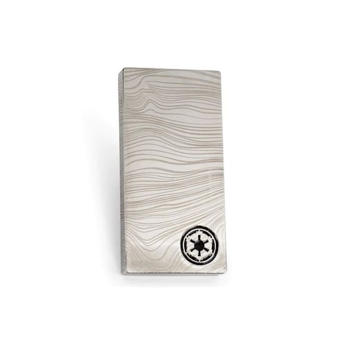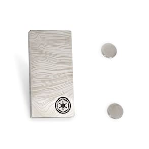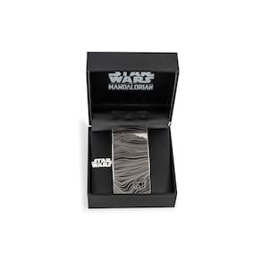 COLETE SUA RECOMPENSA Personalize qualquer look com esta réplica de alfinete esmaltada Beskar Credit inspirada em The Mandalorian. Feito de metal básico durável, este pino magnético de 3 polegadas tem um design autêntico como uma placa metálica brilhante de Beskar Credit — a moeda imperial usada na série de sucesso Disney Plus Star Wars. Medindo 3 x 1,5 x 1/4 polegadas, este alfinete esmaltado colecionável possui dois ímãs fortes que permitem que ele seja facilmente utilizado como acessório diário. Aumente sua coleção de Star Wars hoje com este pino esmaltado Beskar Credit Replica, que vem lindamente embalado em uma caixa de exibição em forma de concha com tema Mandaloriano.