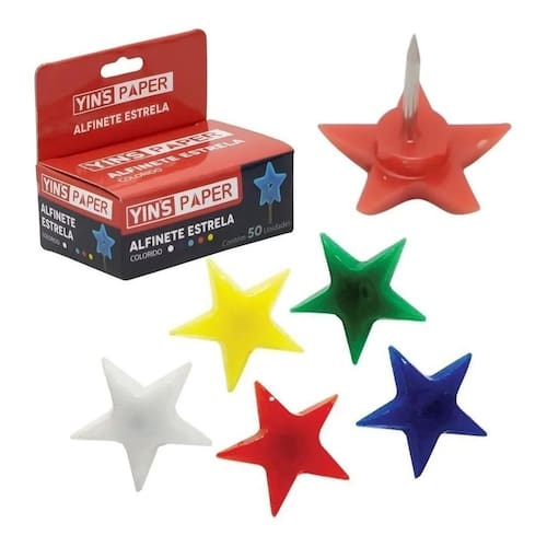 tipo de produto: alfinete / tachinha para mapa e cortica estrela yins paper 50 pecas