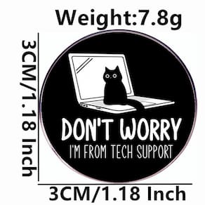 Material: Liga Tamanho: 3 x 3 cm Peso: 7,8 g Quantidade: você receberá todas as peças em quantidade igual à primeira foto principal. Mostre um gato engraçado Design: apresenta um broche redondo com um lindo gato preto sentado em um laptop e o texto engraçado “Não se preocupe, sou do suporte técnico”, adicionando um toque divertido à sua roupa. Material de liga de qualidade: feito de liga durável com revestimento de esmalte liso, leve, mas resistente, resistente a arranhões e fácil de manter. Estilo versátil: funciona como alfinetes de blusa, broche, alfinete de lapela ou crachá, perfeito para decorar jaquetas, bolsas, chapéus ou uniformes com um toque de gato nerd. Compacto e portátil: tamanho 3x3 cm, peso 7,8 g, pequeno e fácil de usar, oferecendo estilo sem sobrecarregar suas roupas ou acessórios. Perfeito para fãs de gatos e tecnologia: um acessório divertido para mulheres, homens, estudantes e profissionais que gostam de humor felino e querem mostrar personalidade em roupas diárias.