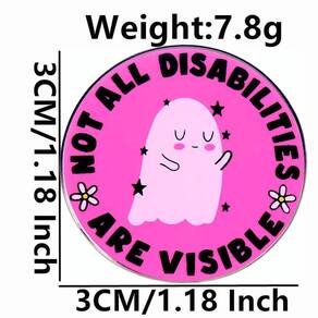 Material: liga Tamanho: 3 x 3 cm Peso: 7,8 g Quantidade: você receberá todas as peças em quantidade igual à primeira foto principal Mostrar design de citação inspiradora: apresenta a frase “Nem todas as deficiências são visíveis” com um lindo personagem fantasma, espalhando consciência e positividade. Material de liga durável: feito de liga de qualidade com acabamento esmaltado suave, garantindo durabilidade, cores brilhantes e brilho duradouro. Uso versátil: funciona como alfinetes de blusa, broche, alfinete de lapela ou crachá, ideal para decorar mochilas, jaquetas jeans, chapéus e uso diário. Compacto e leve: medindo 3x3 cm e pesando 7,8 g, portátil e fácil de colocar sem adicionar peso extra. Acessório significativo: perfeito para estudantes, adolescentes e adultos que apreciam alfinetes de esmalte exclusivos com mensagens motivacionais.