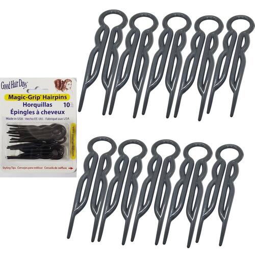 - Design de pino de cabelo patenteado feito com plástico flexível e forte. Uma combinação vencedora melhorada pela Good Hair Days, uma fabricante familiar de acessórios de cabelo dos EUA desde 1996. Com décadas de conhecimento do produto e experiência prática, nossos produtos capilares de alta qualidade atraem todas as idades, todas as cores de cabelo e são feitos para durar para caber no seu orçamento. Com confiança, use nossos grampos de cabelo de plástico Magic-Grip para criar penteados que seguram de forma confiável o dia todo.