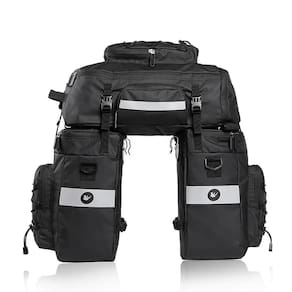 Alforge Bolsa Mochila Tripla Bike Bagageiro Traseiro 75L Este alforge/bolsa/mochila da Rhinowalk é uma obra prima para ciclistas amantes de bikepacking. Pode armazenar incríveis 75L de equipamento, além de possuir diversas outras funções. Possui dois alforges laterais com engate rápido no bagageiro, que podem virar bolsas. Na parte superior possui outra bolsa totalmente removível, que vira facilmente uma mochila. Fabricado em poliéster impermeável, sendo resistente a chuvas pouco intensas. Mas no caso de chuva intensa, pode-se utilizar a capa protetora que acompanha o produto.