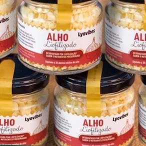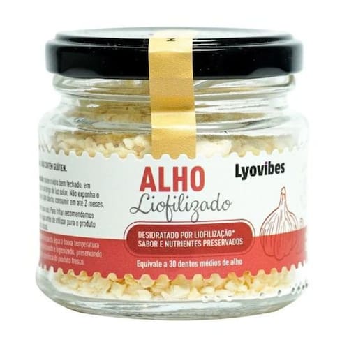 O Alho Liofilizado Lyovibes passa pelo processo de liofilização, 100% natural, onde os nutrientes, sabor, aroma e aparência do alho são preservados.