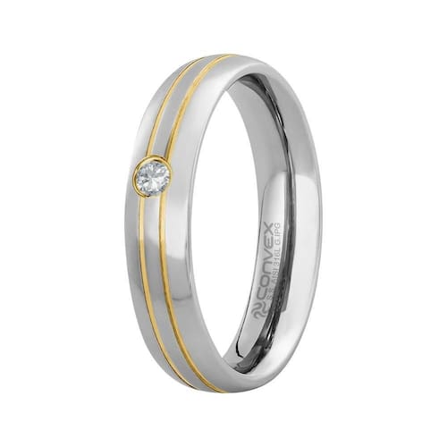 Aliança em Aço Lisboa 5mm com Filete Central Duplo Gold IPG e Zircônia 2.5mm