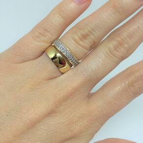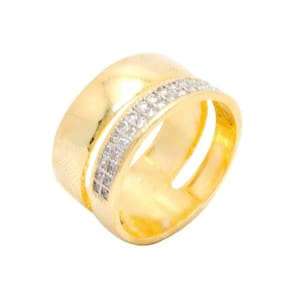 Aliança Larga Semi Joia, banhado a Ouro 18k, e Aparador com Cravação de Zircônias e detalhe em Ródio.