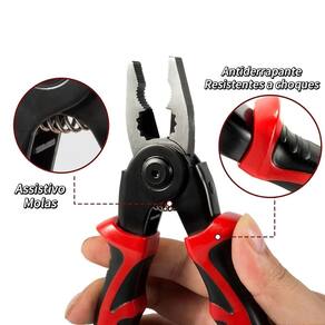 Alicate Universal: Ideal para apertar parafusos e segurar objetos com firmeza, adaptando-se a diversas tarefas.