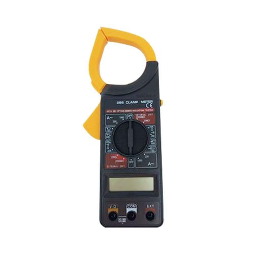 O alicate amperímetro digital DT266, com tela de cristal líquido LCD de 3 ½ dígitos, é um produto portátil, equipado com função de teste de isolação. Projetado para uso por eletricistas, técnicos e usuários que necessitam um instrumento preciso, confiável e sempre pronto para uso. Utilizando apenas bateria comum zinco-carbono ou alcalina de 9,0V, fornece de 150 a 200 horas de operação. Possui um projeto com estrutura robusta, que se adapta facilmente à mão do operador. A tela de cristal líquido possui mostrador de fácil leitura, para todas as condições de iluminação. O ponto decimal, posicionado automaticamente, e o sinal de polaridade negativa (–) acendem para medição em corrente contínua, o que permite uma leitura direta na unidade escolhida utilizando a chave seletora. Quando não parecer sinal, considere como polaridade positiva (+). Em caso de faixa de medição acima do permitido pelo aparelho, a tela ficará em branco (apagada). A tela também tem indicação de bateria com carga baixa. Caso isso ocorra, favor trocar a bateria por uma nova, com especificação 9.0V zinco-carbono comum ou alcalina.