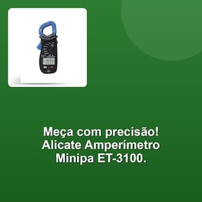 Com precisão básica de 1,0%, o Alicate Amperímetro Digital Minipa ET-3100 garante resultados confiáveis e consistentes, sendo uma ferramenta indispensável para profissionais de elétrica, técnicos de manutenção e até mesmo usuários domésticos que desejam realizar diagnósticos rápidos e seguros. Alimentado por três baterias CR2032 de 3V, ele combina eficiência energética com praticidade, eliminando preocupações com substituições frequentes.