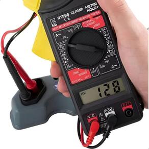 Alicate Amperímetro Digital Portátil Teste Tensão Elétrica Projetado para uso por eletricistas, técnicos e usuários que necessitam um instrumento preciso, confiável e sempre pronto para uso. A tela de cristal líquido possui mostrador de fácil leitura, para todas as condições de iluminação. O ponto decimal, posicionado automaticamente, e o sinal de polaridade negativa (-) acendem para medição em corrente contínua, o que permite uma leitura direta na unidade escolhida utilizando a chave seletora. Quando não parecer sinal, considere como polaridade positiva (+). Em caso de faixa de medição acima do permitido pelo aparelho, a tela ficará em branco (apagada). A tela também tem indicação de bateria com carga baixa. Caso isso ocorra, favor trocar a bateria por uma nova, com especificação 9.0 V zinco carbono comum ou alcalina. Itens Inclusos: - 01 Alicate Amperímetro - 02 Cabos de Teste - 01 Estojo de Proteção
