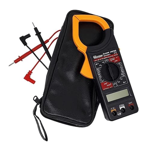 Descricao Alicate amperimetro digital KM-2O Alicate Amperimetro Digital da Western e essencial e muito utilizado para medir a corrente eletrica de uma forma que seja segura e simples, de extrema importancia para o cotidiano de qualquer eletricista!Caracteristicas:Utiliza 1 Bateria 9V (inclusa).Medir a corrente eletrica.Corrente CA - 0,1V a de isolacao - lOOkW a 2000MQ (somente para a unidade de teste de isolacao de 500V).Tensao CA - 1V a CC - 600V A 1000V.Resistencia - 100mQ a 20kQ.Continuidade audivel - Bipe soara se a resistencia for menor que 30+- 20Q.Condicao de uso - 0C - 40C (umidade relativa do ar <85%)Alimentacao - 1 Bateria 9VNEDA 1604/ de medida - Tecnica de integracao com dupla de leitura - 2 leituras/segundo.Polaridade - Automatica com sinal indicador negativo positivo suposto.Indicacao de sobrecarga - Mostra o Util da bateria - ate 200h com bateria alcalina ; ate 150h com bateria de -carbono.Indicacao de bateria - o visor apresenta um sinal de bateria fraca quando a carga da baterias inferior a - LCD de 3,5 digitos (ate 1999), altura de 13mm.Manutencao da Ultima leitura - Todas as funcoes e faixas com esta caracteristica.Eletricidade Estatica - cerca de 4mA.Temperatura de operacao normal - 18C - 2C.Condicao de uso - 0C - 40C (umidade relativa do ar <85%).Armazenamento - -10C a 50C ( sem bateria e com umidade relativa do ar <85%). Detalhamento/Especificacoes:1. GARRAS DO TRANSFORMADOR: Mede a corrente CA fluindo atraves do GATILHO DE ABERTURA DO ALICATE: Aperte para abrir as garras do alicate amperimetro. Ao soltar a garra se BOTAO DE RETENCAO DE DADOS DA ULTIMA MEDIDA ( DATAHOLD): Mantem o valor da medida efetuada no instante em que esta tecla pressionada e impede novas leituras CHAVE SELETORA ROTATIVA: Para selecionar a funcoes e a faixa de medicao do VISOR DE CRISTAL LAQUIDO: 3 1/2 digitos, (1999), ponto decima,l indicador de polaridade negativa e indicadores de sobrepassagem {valor medido maior que o maximo valor aceitavel para a faixa de medicao selecionada) e bateria CONECTOR DE ENTRADA EXT: Usada para receber o plugue banana EXT da unidade de teste de resistencia de CONECTOR DE ENTRADA COM: / Entrada de menor potencial para todas as medidas de Tensao, Resistencia e Continuidade. Aceita plugue CONECTOR DE ENTRADA V/O : Entrada de maior potencial para as medidas de Tensao, Resistencia e Continuidade. Aceita plugue ALCA: Utilize-o para prevenir o instrumento contra quedas acidentais*Imagens meramente ilustrativas.Especificacao Tecnica 1. Tensao CA (sensor de midia, calibrada para o valor rms de uma onda senoidal)Faixa Resolucao Precisao (50Hz a 500Hz)750V 1V +/- (1,2% da leitura+ 5 digitos)Escala de frequencia: 45Hz -450HzProtecao de sobrecarga 1000 CC ou 750V rms sobre todas as faixas2. Corrente CA (sensor de midia, calibrada para o rms de uma onda senoidal)Faixa Resolucao Precisao (50Hz - 60Hz)200A lOOmA +f- (2,5% da leitura + 13 digitos)1000A 1A /- (2,5% da leitura+ 8 digitos) para medida menor que 800A. A leitura apenas para referencia para acima de BOOAProtecao de sobrecarga - 1200A (por ate 60 segundos) Abertura do alicate - 53 Teste de isolacao (para a unidade com a opcao de teste de isolacao de 500VFaixa Resolucao Precisao20MQ lOkQ +/- (2% da leitura+ 2 digitos)2000MQ lMQ +f - (4% da leitura + 2 digitos) para medida menor que 500MQ /- (5% da leitura + 2 digitos) para outros Tensao CC: > 600V a 1000VResolucao 1VFaixa Resolucao Precisao (50Hz a 500Hz)1000V 1V +f- (1,0% da leitura+ 5 digitos) Impedancia de entrada 9MO Protecao de sobrecarga 1000V CC ou 750V rms para todas as ResistenciaFaixa Resolucao Precisao2000 O,lQ +/- (1,0% da leitura+ 10 digitos)20k0. lOQ +f- (1,0% da leitura + 4 digitos)Protecao de sobrecarga: 15 segundos Maximo 250V rmsCircuito aberto tensao maxima: 3V6. Continuidade AudivelFaixa DescricaoA O bipe soara se a resistencia for menor que 30 20QProtecao de sobrecarga 15 segundos maximo 250V rms