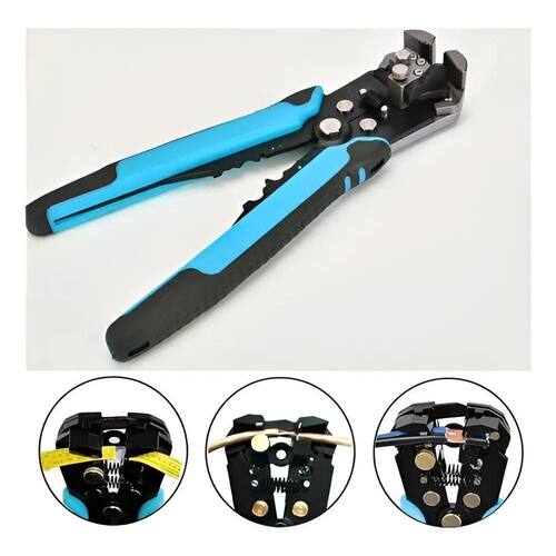 Alicate Decapador e Cortador De Fios Automático 8 Mult' possui cabos com dupla injeção e são testados para resistência ao desgaste do gume de corte em máquina de ensaio específica. Os alicates têm dureza diferenciada no gume de corte e no corpo. Possui batente para controlar e ajustar o tamanho do fio a ser desencapado, facilitando o ajuste dos cabos a serem desencapados. O batente permite desencapar sempre um mesmo comprimento de fio, otimizando a operação posterior de crimpagem com terminais normalizados. Possui pino de micro ajuste que regula a intensidade da força para corte do fio. Desencapa 7 diferentes bitolas de fios 0.2 à 6.0 mm2, corta fios de 0.2 à 6.0 mm2. Crimpa 3 diferentes tipos de terminais: com isolamento, sem isolamento de 10 - 22 AWG 0.5 mm2 à 6.0 mm2 e de ignição de 7 mm à 8 mm. Alicate Ideal para uso industrial e automotivo. As ferramentas são produzidas e testadas conforme normas específicas.