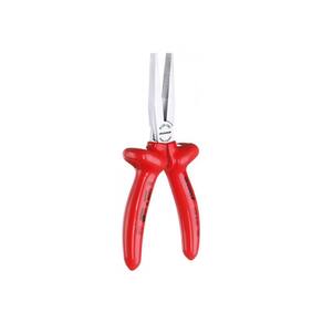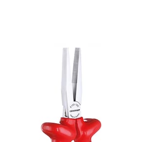 Corpo em aço Gedore-Vanadium e empunhadura em polímero anti-chamas. Acabamento niquelado, cromado e polido. Empunhadura ergonômica, com abas protetoras arredondas para maior conforto e segurança. Produzida por imersão, propiciando isolação até 1000 V, conforme norma EN 60900 / IEC 60900, submetida à ensaios de: impacto, tensão elétrica, aderência, inflamabilidade e pressão/. Utilizar ferramentas isoladas VDE, em tensão máxima de 1000 V em corrente alternada e 1500 V em corrente contínua, conforme norma EN 60900 / IEC 60900. Possui dupla camada de isolação Check-Tool, no exterior é na cor vermelha, padrão Gedore. Atende com segurança a norma regulamentadora NR 10 - Segurança em Instalações e Serviços em Eletricidade, possui certificado de isolação. Alicate de bico chato e longo, sem corte, com dentes finos em , que permite puxar, segurar e dobrar fios e cabos. Para trabalhar em montagens e reparos eletroeletrônicos. Especificações técnicas: - Referência: VDE 8120 - 160 - Tamanho: 160mm / 6.1/2 Pol. - Peso: 0,185 Kg - Corpo em aço Gedore-Vanadium e empunhadura em polímero anti-chamas. Acabamento niquelado, cromado e polido. - Empunhadura ergonômica, com abas protetoras arredondas para maior conforto e segurança. - roduzida por imersão, propiciando isolação até 1000 V. Marca: Não Informado