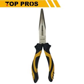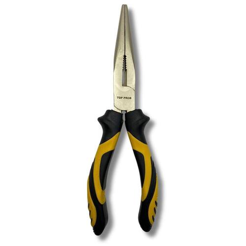 O alicate de bico reto de 8 polegadas, composto por aço carbono niquelado e polipropileno com revestimento termoplástico. É uma ferramenta que possui mandíbulas estreitas, retas e com serras, ideal para agarrar, segurar, dobrar e Manipular objetos em espaços apertados. a niquelação é uma camada de revestimento que protege o alicate de corrosão. Perfeito para tarefas precisas como eletrônica, montagem de peças e manutenção. A marca top pros é reconhecida pela excelência na qualidade e praticidade dos seus produtos. Ela faz parte de um grupo de outras marcas já fortemente reconhecidas no ramo de persianas, decoração, bazar E utilidades domésticas e agora traz o seu conhecimento na área das ferramentas.