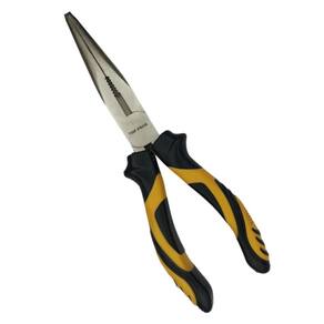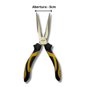Alicate bico longo reto 8 meia cana niquelado aço carbono 200mm cabo com borracha termoplástica - alicate de bico reto 8 polegadas - comprimento do alicate: 200mm - material do cabo: polipropileno com borracha termoplástica - material da ferramenta: aço carbono niquelado - tamanho da abertura: 5cm - suporta fio de aço de 1,4mm - diferencial do produto: robusto