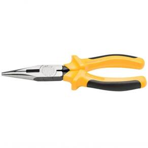 O Alicate Bico Meia Cana 6 Polegadas Isolado Tramontina Master com Empunhadura Dupla Injeção é a escolha certa para quem busca precisão e segurança em serviços elétricos e de manutenção. Com bico longo, ele é ideal para alcançar locais de difícil acesso, sendo amplamente utilizado em instalações elétricas e de telefonia. Conta com área serrilhada para firmeza na pega de objetos e com espaço para corte de arames. Sua empunhadura ergonômica com dupla injeção proporciona maior conforto durante o uso. Produzido em aço vanádio temperado, garante alta resistência e durabilidade, além de ser indicado para trabalhos em locais com baixa tensão de até 1.000 V em corrente alternada. Uma ferramenta indispensável para o dia a dia profissional.