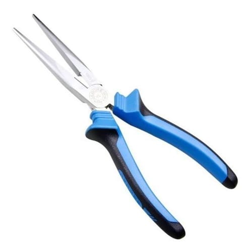 alicate com bico reto tipo telefone fabricado em aço gedore- vanádio acabamento cromado cabo com formato ergonômico tratamento térmico total e indução no corte projetado para cortar arame duro com isolamento de 1000v comprimento: 210 mm
