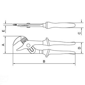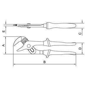 O alicate bomba-dágua é a ferramenta que não pode faltar na manutenção de redes elétricas e instalações hidráulicas, sendo também muito utilizado em serviços de mecânica. Por possuir regulagem de abertura, é uma ferramenta superversátil. A ferramenta certa para você que precisa de resistência e segurança. Orientações Forjado em aço cromo vanádio. Acabamento fosfatizado.Possui 6 regulagens de abertura.Isolação elétrica de 1.000 V CA.Produto em conformidade com a NBR9699 e NR10.ISO 8976.Os alicates de corte são testados quanto à resistência ao desgaste do gume de corte em máquina de ensaio específica.Os alicates possuem dureza diferenciada no gume de corte e no corpo.Os alicates também são testados com relação à aderência das empunhaduras de PVC.Um ensaio de extrema importância analisa o grau de isolação do revestimento aplicado sobre os cabos dos alicates isolados, e que promove segurança na sua utilização em locais com tensões de até 1.000 V CA.Utilizado para trabalhos de manutenção em redes elétricas e instalações hidráulicas.Especialmente projetado para montar conectores tipo cunha utilizado em derivações.As ferramentas são produzidas e testadas conforme normas específicas. Características Gerais EAN13 7891114075250 DUN14 17891114075257 NCM 8203.20.10 Peso Líquido 0,8400 kg. Peso Bruto 0,8400 kg. Metragem 0,001140 m³. Dimensões Embalagem (Compr. X Larg. X Alt.) 380x 100x 30 mm. Dimensões Produto (Compr. X Larg. X Alt.) 308x 86x 24 mm. Cor 1 EF8134 Hexa Dimensão Extra A 86,0 mm. Dimensão Extra B 308,0 mm. Dimensão Extra C 24,0 mm. Dimensão Extra D 55,5 mm. Dimensão Extra E 8,0 mm. Observações Use óculos, luvas e outros equipamentos de proteção individual (EPIs) de acordo com a tarefa a ser executada. Observe as indicações de uso de cada tipo de alicate. Nunca utilize um alicate para cortar arames endurecidos, a não ser que tenha sido projetado para este fim. Nunca utilize o alicate como martelo. Ele pode trincar ou até mesmo quebrar. Nunca exponha os alicates ao calor excessivo. Isto pode alterar o tratamento térmico aplicado no corte e afetar o seu desempenho. Sempre posicione o corte do alicate perpendicularmente ao eixo do arame para uma operação mais rápida e segura. Utilize alicates isolados, identificados pela marcação 1.000 V no cabo, quando for necessário trabalhar em locais com corrente elétrica. Importante: nestes casos, inspecione a integridade da isolação elétrica, e, se aparecerem trincas na isolação, suspenda o uso imediatamente. Nunca aumente o comprimento dos cabos dos alicates. Isto amplifica a força exercida sobre a cabeça da ferramenta podendo quebrá-la. Nunca utilize o alicate em porcas e parafusos. Para estes trabalhos, indica-se o uso de chaves de aperto. Lubrifique periodicamente a articulação. Isto aumenta a vida útil do produto e melhora sua performance. Manter os alicates longe do alcance de crianças. Armazene em local limpo e seco.