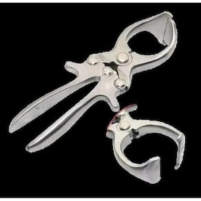 Torquês de aço reforçado que interrompe o fluxo sanguíneo aos testículos, cortando os cordões sem danificar o escroto ou bolsa Não produz hemorragias nem feridas no escroto, não expondo o animal a infecções nem bicheiras. O animal pode voltar imediatamente ao pasto Fácil de executar e não exige conhecimentos especiais Caso seja feito de forma incorreta pode ser refeito.