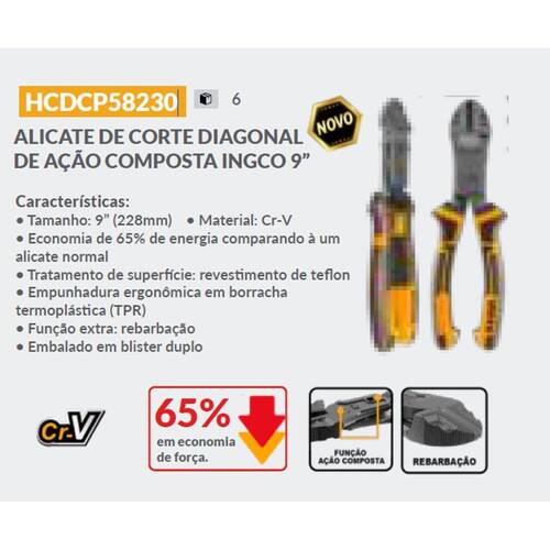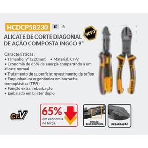 O alicate de corte diagonal ingco hcdcp58230 é a ferramenta ideal para todos os tipos de profissionais que buscam eficiência, precisão e durabilidade em suas atividades. Com um design ergonômico e um tamanho de 9 polegadas 228mm , este alicate é perfeito para cortes em fios, cabos e outros materiais, permitindo que você execute suas tarefas com facilidade e conforto.