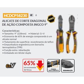 ALICATE DE CORTE DIAGONAL DE AÇÃO COMPOSTA INGCO 9”