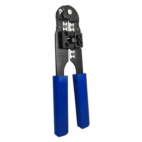 Para crimpagem de conectores RJ45; Possui lâminas resistentes e precisas para o corte; Fabricado em material super resistente de altíssima qualidade; Empunhadura confortável; Cabo emborrachado e anatômico;