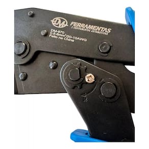Alicate crimpar terminais mc4 painel solar 0,5 a 6mm Alicate para crimpagem de terminais automotivos 0,5 a 6mm terminais ados: faston macho e fêmea, superseal, econoseal, hylock, mat in lock e outros. Especificações de crimpagem: cabos de 0.50 a 6mm 10 a 20 awg 1o dente: 0,1 a 1mm 2o dente: 1 a 2,5mm 3o dente: 4 a 6mm observação: não acompanha terminais. Peso 0,600 kg diferencial: com catraca e regulagem comprimento: 230mm peso: 0,600kg material plástico: nylon cor do cabo do alicate: ul material metálico: aço itens inclusos: 1 alicate crimpa terminais 1 embalagem blister. Marca: dm ferramentas e equipamentos automotivos de 6 meses. 3 meses de legal contra defeito de fabricação e 3 meses de concedido pela dm ferramentas contra defeitos de fabricação Marca: Não Informado Ean: 7894666182087