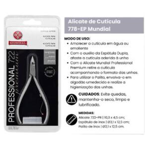Alicate Cutícula 722 Professional Premium Aço Inox Mundial Prateado O kit Alicate De Cutícula Mundial Inox - 772 Cabo Longo é a escolha perfeita para quem busca precisão e durabilidade no cuidado das unhas. Fabricado em aço inoxidável de alta qualidade, este alicate garante um corte preciso e suave, permitindo a remoção eficaz das cutículas sem danificar a pele ao redor das unhas. Ideal para e doméstico, o Alicate De Cutícula Mundial 772 é um item essencial para manter as unhas sempre bem cuidadas e bonitas. Benefícios: - Precisão e durabilidade no cuidado das unhas; - Design ergonômico com cabo longo para manuseio confortável e seguro; - Fabricado em aço inoxidável de alta qualidade; - Corte preciso e suave para remoção eficaz das cutículas; - Ideal para e doméstico. Modo de usar: Antes de utilizar o alicate, certifique-se de que as cutículas estão amolecidas. Utilize um removedor de cutículas ou deixe as mãos de molho em água morna por alguns minutos. Com cuidado, utilize o alicate para remover as cutículas excessivas, evitando puxar ou cortar demais. Limpe e higienize o alicate após cada uso para garantir a durabilidade e a eficiência do corte. Marca: Não Informado Ean: 7891060812343