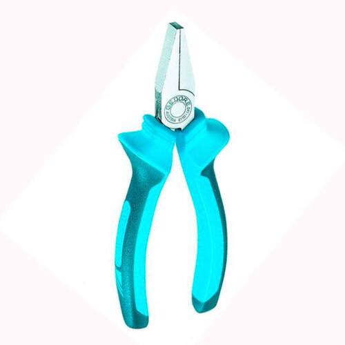 Corpo em aço Gedore-Vanadium e empunhadura em polímero anti-chamas nas cores azul e preto, padrão Gedore. Acabamento niquelado e cromado. Empunhadura ergonômica e antideslizante, com abas protetoras arredondadas para maior conforto e segurança. Produzida por injeção, propiciando isolação até 1000 V, conforme norma NBR 9699, submetida à ensaios de: impacto, tensão elétrica, aderência, inflamabilidade e pressão/peneração. Utilizar este Alicate isolado, em tensão máxima de 1000 V em corrente alternada e 1500 V em corrente contínua, conforme norma NBR 9699. Atende com segurança a norma regulamentadora NR 10 Segurança em Instalações e Serviços em Eletricidade, possui certificado de isolação. Alicate de bico chato e curto, sem corte, com dentes finos e em paralelo, que permite puxar, segurar e dobrar fios e cabos. Indicado para trabalhar em montagens e reparos eletroeletrônicos.