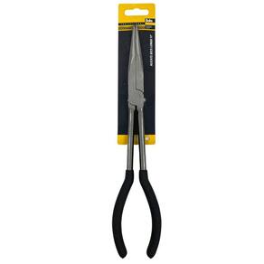 Alicate de bico fino longo, estendido, fabricado em material de alta qualidade, longa durabilidade. Perfeito para aplicações e uso em lugares de difícil acesso, e de uso em geral para o dia-a-dia. Cabo emborrachado.