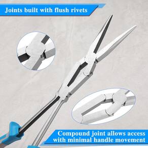?Alicate de ponta longa de junta dupla??ESPECIFICAÇÃO?Material: aço carbono; Cabo: TPR ; Tratamento de superfície: acabamento polido; DIMENSÃO: 343 x 56 x 19 mm / 13,50 x 2,20 x 0,75"; ?CUIDADO? 1. Mantenha fora do alcance de crianças. 2. Inspecione antes de cada uso. Não use se estiver danificado. 3. Um pouco de óleo na superfície para manter as chaves livres de ferrugem, não afetará o desempenho, basta limpá-la com um pano ou toalha velha. - ?APLICAÇÃO?Aderência de pequenos tubos, parafusos, cabos e etc., nariz longo e design de longo alcance são adequados para espaços difíceis de alcançar. - ?DESIGN?Este produto tem designs de juntas compostas que permitem acesso com o mínimo de movimento da alça, tornando o comprimento total de 33 cm para trabalhar (agarrar, puxar) em áreas confinadas profundas. O comprimento estendido de 33 cm permite que você navegue sem esforço em torno de obstáculos e alcance espaços apertados. - ?MATERIAL?Feito de aço de alto carbono e foi tratado termicamente para melhorar a resistência e durabilidade. A superfície foi polida. As alças bicolores ergonomicamente projetadas para aderência antiderrapante e confortável. - ?DIMENSÃO? 343 x 56 x 19 mm / 13,50 x 2,20 x 0,75". - ?Óleo antiferrugem? O óleo antiferrugem pode aparecer no alicate, pode proteger o alicate de ferrugem. Não são produtos sujos ou utilizados, você pode limpá-lo com uma toalha e isso não afetará a função.