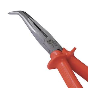 O Alicate de Bico Meia-Cana Curvo 8'' 381,0002 - Noll, é uma ferramenta manual projetada com pontas semi-arredondadas e uma curvatura na extremidade, permitindo maior acessibilidade em locais de difícil acesso; esse tipo de alicate é comumente utilizado em trabalhos de eletricidade, mecânica, e outras áreas onde é necessário alcançar objetos em espaços apertados. É importante utilizar o alicate corretamente, aplicando a força necessária de maneira segura para evitar danos aos materiais e garantir um trabalho eficiente.