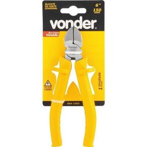 Alicate De Corte Diagonal Isolado 1000v 6 - Vonder Principais Características: - Indicado para cortar e desencapar fios e cabos elétricos e arames; - Capacidade de corte: 1,6 mm (Arame duro) e 2,5 mm (Arame macio); - Produzido em aço Cromo vanádio, proporcionando maior durabilidade; - Possui cabo isolado antiderrapante (ranhurado); - Abas de proteção que conferem melhor manuseio. Especificações Acabamento Polido Comprimento 6 (152mm) Tipo de corte Diagonal Material Cromo Vanádio Isolação Elétrica 1000V Altura 10.5 cm Largura 31.5 cm Comprimento 2.625 cm Peso Bruto 0.63 kg Ean: 7893946160142