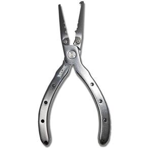 especial para cortes de multifilamentos, fluorocarbon, nylon, fios de cobre e fio de aço flexível. Ideal para abertura de split ring, remoção de anzóis, confecção de lideres, encastoados e aperto de luvas. Possui afiadas e resistentes lâminas de corte. Anatômico resistente e extremamente leve. Indispensável em uma pescaria. Especificações: