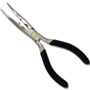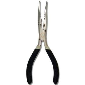 Com seu sistema amassador de chumbos e luvas para encastoar, o alicate possibilita modelar fios de aço, cortar linha de nylon e monofilamento, além de auxiliar no manejo de anzóis e iscas. Seu bico curvo facilita a retirada de anzóis da boca dos peixes, tornando a atividade de pesca mais eficiente.