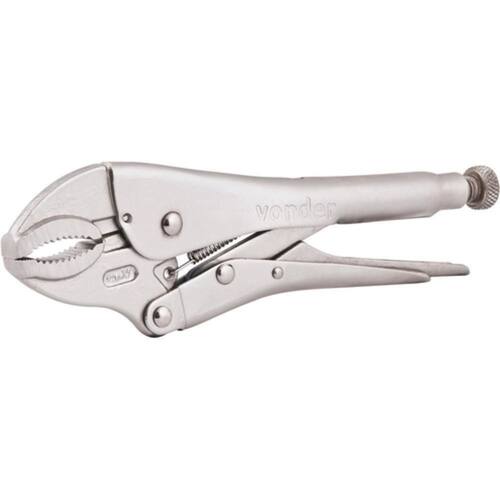 Alicate de pressão 10 bico curvo VONDER PLUS Aplicações e dicas de uso Indicado para segurar, fixar, prender, travar, apertar e soltar diversos perfis de materiais. Destaques e diferenciais Produzido em aço cromo vanádio, proporcionando maior resistência e durabilidade Dados Técnicos Material do corpo do alicate: Aço cromo vanádio Acabamento do alicate: Cromado fosco Comprimento total do alicate: 10 - 254 mm Indicação: Soldagem Serralheria Ficha técnica - Tipo de alicate de pressão: Curva - Abertura de mordaça: 250MM - È autoajustável: Sim Ean: 7893946094041