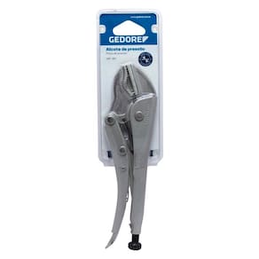 Produto com mordentes em aço Gedore-Vanadium e demais componentes em aço especial. Corpo com acabamento niquelado e cromado e parafuso de regulagem escurecido. Em função do desenho exclusivo de seus mordentes, “Gedore-Grip” prende materiais com vários formatos. Possui parafuso de ajuste e alavanca de liberação. Ferramenta com formato curvo inferior e reto superior Conta com um gatilho de liberação rápida Fácil manuseio Em função do desenho exclusivo de seus mordentes, prende materiais de vários formatos