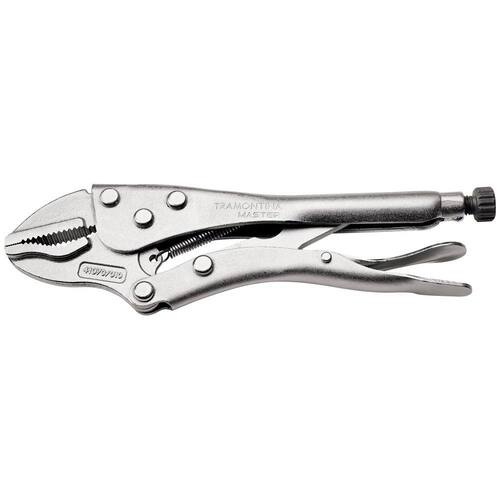 O Alicate de Pressão 10 polegadas Tramontina com mordente triangular é a ferramenta que faltava em seu kit. Um item que vai facilitar muito mais o corte, solda, lixa e outros trabalhos que precisem que o objeto esteja fixado. Possui sistema de trava que aciona assim que o objeto é preso. É produzido em aço especial com têmpera e seus mordentes possuem perfil triangular. Uma ferramenta de alto desempenho que prende, trava e não solta! Orientações Mordentes forjados em aço especial e temperados. O aço carbono especial empregado na fabricação dos mordentes, aliado à têmpera garantem maior resistência.Corpo formado por chapas conformadas.Acabamento cromado.Abertura regulável.Possui alavanca para destravar.Mordentes com perfil triangular.Sistema de rebites especialmente projetado para aumentar a resistência do produto.Formato ergonômico para maior conforto.As ferramentas são produzidas e testadas conforme normas específicas. Observações Use óculos, luvas e outros equipamentos de proteção de acordo com a tarefa a ser executada. Observe as indicações de uso de cada tipo de alicate ou torquês. Nunca utilize um alicate ou torquês para cortar arames endurecidos, a não ser que tenha sido projetado para este fim. Nunca utilize o alicate ou torquês como martelo. Ele pode trincar ou até mesmo quebrar. Nunca exponha os alicates ou torqueses ao calor excessivo. Isto pode alterar o tratamento térmico aplicado no corte e afetar o seu desempenho. Sempre posicione o corte do alicate ou torquês perpendicularmente ao eixo do arame para uma operação mais rápida e segura. Utilize alicates isolados, identificados pela marcação 1.000 V no cabo, quando for necessário trabalhar em locais com corrente elétrica. Importante: nestes casos, inspecione a integridade da isolação elétrica, e, se aparecerem trincas na isolação, suspenda o uso imediatamente.Nunca aumente o comprimento dos cabos dos alicates ou torqueses. Isto amplifica a força exercida sobre a cabeça da ferramenta podendo quebrá-la.Nunca utilize o alicate ou torquês em porcas e parafusos. Para estes trabalhos, indica-se o uso de chaves de aperto.Lubrifique periodicamente a articulação. Isto aumenta a vida útil do produto e melhora sua performance.Armazene em local limpo e seco. Características Gerais EAN13 7891114062342 DUN14 17891114062349 NCM 8203.20.10 Peso Líquido 0,5800 kg. Peso Bruto 0,5800 kg. Metragem 0,000677 m³. Dimensões Embalagem (Compr. X Larg. X Alt.) 285x 95x 25 mm. Dimensões Produto (Compr. X Larg. X Alt.) 225x 70x 19 mm. Dimensão Extra A 70,0 mm. Dimensão Extra B 225,0 mm. Dimensão Extra C 57,0 mm. Dimensão Extra D 12,0 mm. Dimensão Extra E 19,0 mm.