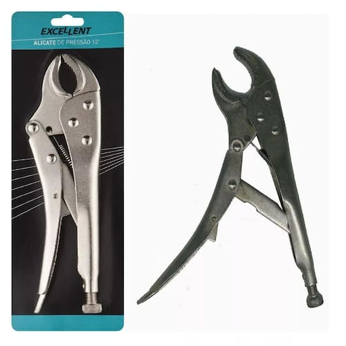 O Alicate de Pressão Bico Curvo Com Regulador Mordente Em Aço é indicado para fixar, prender, travar, apertar e soltar diversos perfis de materiais. É uma ferramenta indispensável em oficinas, indústrias, empresas, fundições e residências.