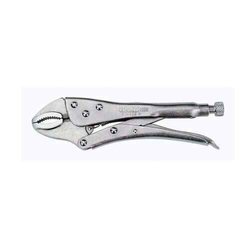 Mandíbulas curvas com 4 pontos de contato para maior pressão sobre porcas e parafusos. Fabricada em aço cromo vanádio com superfície para cortar arame. Alavanca de rápida liberação.