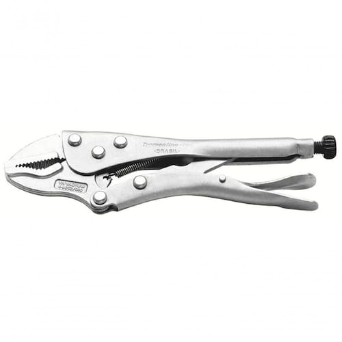 - Mordentes forjados em aço cromo vanádio.- Corpo formado por Chapas conformadas.- Acabamento cromado.- abertura regulável.- Possui alavanca para destravar.- Possui Mordentes com perfil triangular.- Segurar, puxar e prender peças firmemente.- em trabalhos Leves Pode ser como uma prensa. Ean: 7891114008722