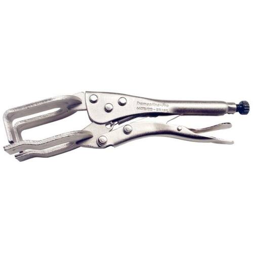 Informações Gerais: Mordentes reforçados em aço. Corpo formado por chapas conformadas. Acabamento cromado. Abertura regulável. Possui alavanca para destravar. Os alicates de corte são testados quanto à resistência ao desgaste do gume de corte em máquina de ensaio específica. Os alicates possuem dureza diferenciada no gume de corte e no corpo. Utilizado para prender chapas lisas ou com bordas dobradas, tiras e pequenas cantoneiras. As ferramentas são produzidas e testadas conforme normas específicas.