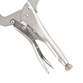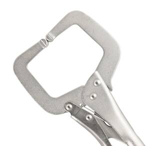 Alicate de pressão tipo C tem 11 polegadas e é utilizado para fixação de perfis largos e angulares. Possui sistema simples e prático de manuseio e gatilho de liberação rápida.