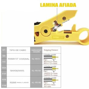 Materiais De Alta Resistência E Design Durável Este Descascador De Cabos Apresenta Uma Construção Robusta Em Aço E Um Design De Plástico Durável, Garantindo Uso Duradouro E Confiabilidade. A Profundidade Da Lâmina É Ajustável Para Acomodar Várias Espessuras De Cabo - Importante: Você Deve Ajustar a Profundidade Da Lâmina Para Adaptar O Seu Cabo Ampla Compatibilidade Projetado Para Uma Variedade De Cabos, Incluindo Cabos Coaxiais rg59, Rg6, Rg7, Rg11 E Cabos De Rede cat5e, Cat6, Utp, Stp , Adequados Para Cabos Redondos E Planos. Desempenho Testado Em Campo: Testado Minuciosamente Para Garantir Facilidade De Uso, Durabilidade Comprovada E Resultados Consistentes De Decapagem De Alta Qualidade. Alicate Decapador Para Vários Tipos De Cabo-decapador Para Fios Utp E Stp, Cabos Cat5 E Cabo De Telefone-decapador Para Fio Coaxial Rg-59/6/11/7 -decapador Para Fios Flat-função De Cortador De CabosConteúdo Da Embalagem:1x Alicate Decapador Marca: Não Informado Ean: 7896442392178