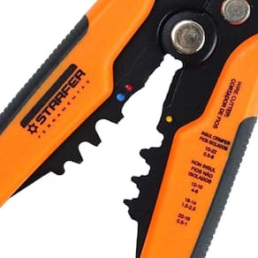 Especificaçôes técnicas: - Serve para decapar e descascar o fio elétrico. - Uso profissional de eletrecistas. - Controla o tamanho do corte do fio. - Maior versatilidade. - Parte de corte feita em aço temperado com lâmina de alta performance. - Cabo de polipropileno reforçado em emborrachado. - A peçinha (o limitador) de plástico serve para você regular o quanto você quer decapar o fio. - O pino serve para você regular e facilitar o aperto. - As prensas terminais na parte inferior servem para você prensar o fio na parte emborrachada. - Muito mais eficiente que qualquer alicate ou outro produto para decapação de fio. - Ajuste o seletor de acordo com abitola do fio a ser decapado - Mordentes em aço Cr12Mov , dureza Hrc 55-60, para todos os tipos de cabos 10AWG - Cortador de fios em aço temperado com lâminas de alta performance - Para terminais isolados 22-10 AWG (0.5-6.0mm2) - Para terminais não isolados 12-10 AWG (4.0-6.0mm2) - Para terminais não isolados 16-14 AWG (1.5-2.5mm2) - Para terminais não isolados 22-18 AWG (0.5-1.0mm2)