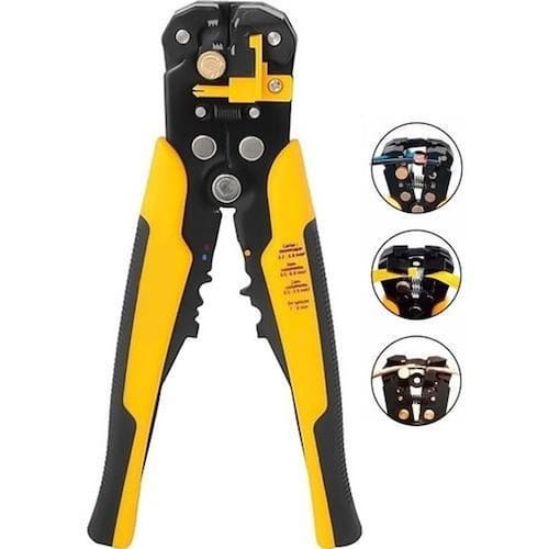 Alicate Desencapador Crimador Automático de fios 5 em 1 Essa ferramenta revolucionária torna so projetos de reparo e montagem mais eficientes para usuários domésticos ou profissionais. Você poderá perceber que a decapagem se tornou mais simples, mais prática e mais segura. Este equipamento é ideal para todos os profissionais do seguimento. ORIENTAÇÕES: Ajustar o botão giratório para descarnar a bitola do fio eletrico até 24 AWVG 0,2 mm Ajuste o botão para o simbolo - para fios mais finos, simbolo + para fios mais grossos. Os desencapadores nãodanificam a parte metálica do fio elétrico. MEDIDAS APROXIMADAS: - Medidas detalhadas nas imagens Características técnicas: - Botão de ajuste; - Decapagem; - Crimpagem; - Botão de Micro ajuste; - Batente de Fios; - Tamanho: 8 Polegadas; - Comprimento da Ferramenta: 20,5 cm; - Cor enviada é feito de forma . Aviso: Produto sujeito a variações conforme nossos fornecedores. Marca: Não Informado